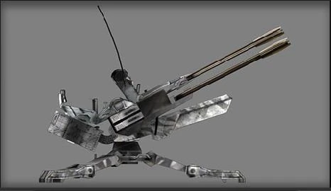 Liquid hydrogen circulates through helical channels along the four 25 mm barrels, allowing the heavy weapons platform to maintain a continuous, high-rate fire without overheating. The weapon can be situated on its quadpod base or it can be mounted on top of the Helghast hover APC, giving the Helghast mobile AA firepower.