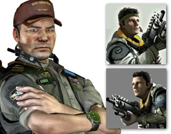 Early sketch and in-game model for Killzone protagonist Jan Templar.