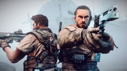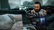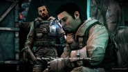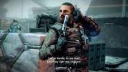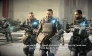Jammer:"Captain Narville, this is Jammer. Do you read? Our platoon is pinned down by heavy enemy fire. Captain Narville, we can't stay here. Where are those Intruders?" Narville:"This is Narville. I'm sorry. If they didn't make it... There's no-one else I can send." Rico:"I'll go." Narville:"Velasquez. Stick to your orders!" Rico:"Fuck your orders. I didn't come here to run from the Helghast. I don't leave people behind. Hold on, Jammer. I'm coming." Sev:"Rico...! I get it but we don't have time." Rico:"I gotta do this man. I'll meet you at the extraction point." Sev:"Hell no. I'm with you." Rico:"This was on me buddy. Besides you gotta tell Narville to wait, okay?"