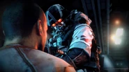 ISA:"Sir, we've captured a bunker full of Helghast ordnance." Narville:"Leave it. (Sees Sev) You might want to keep your friend on a tighter leash, Sergeant." Sev:"Sir, with all due respect. Rico saved both our lives. We wouldn't be here if it weren't for him."