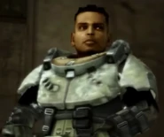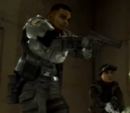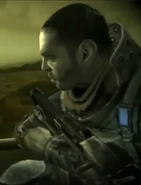 After pushing through the slums, the three managed to find Hakha, but were surprised to find the spy to be a Helghast half-breed. Rico was incensed in which he tried to execute Hakha but was stopped by Templar. Hakha then quickly proved his loyalty by saving Rico's life from being shot from behind by a Helghast soldier.[4] Despite this, Rico still harbored his distrust toward Hakha and very reluctantly escorted him to safety. While en route to their destination, Hakha wanted to hack into the ISA mainframe to process information on the SD platform, which he believed was compromised by the Helghast. But Rico disbelieved Hakha and accused him of being a Helghast double agent trying to disrupt the ISA's war effort before drawing his gun on him. This provoked a near deadly stand off with Hakha and Luger—who believed Hakha's claims—until Templar intervened and ordered them to work together. Rico's paranoia was disproven in which Hakha discovered that General Stuart Adams, the commander of Vekta's orbital defenses, was a Helghast collaborator who was using the SD platform against the ISA.[5]