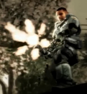 Rico:"Jammer, we're almost at the factory. What's your ETA?" Jammer:"Couple more minutes." Rico:"Same here. See you in a second. (Heavy Helghast shows up) 'Kay... maybe a little longer."