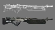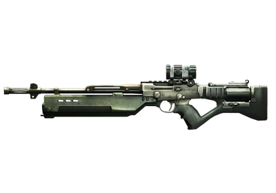 - This weapon appears to borrow design elements from many contemporary assault rifles and battle rifles, namely the barrel group of the Belgian FN FAL and the upper receiver/firing block of the M14 battle rifle, along with a "thumb-grip" stock resembles that of the Heckler& Koch SL-8, as well as an AR-15 style bolt-carrier visible through a hole in the receiver just behind the grip.