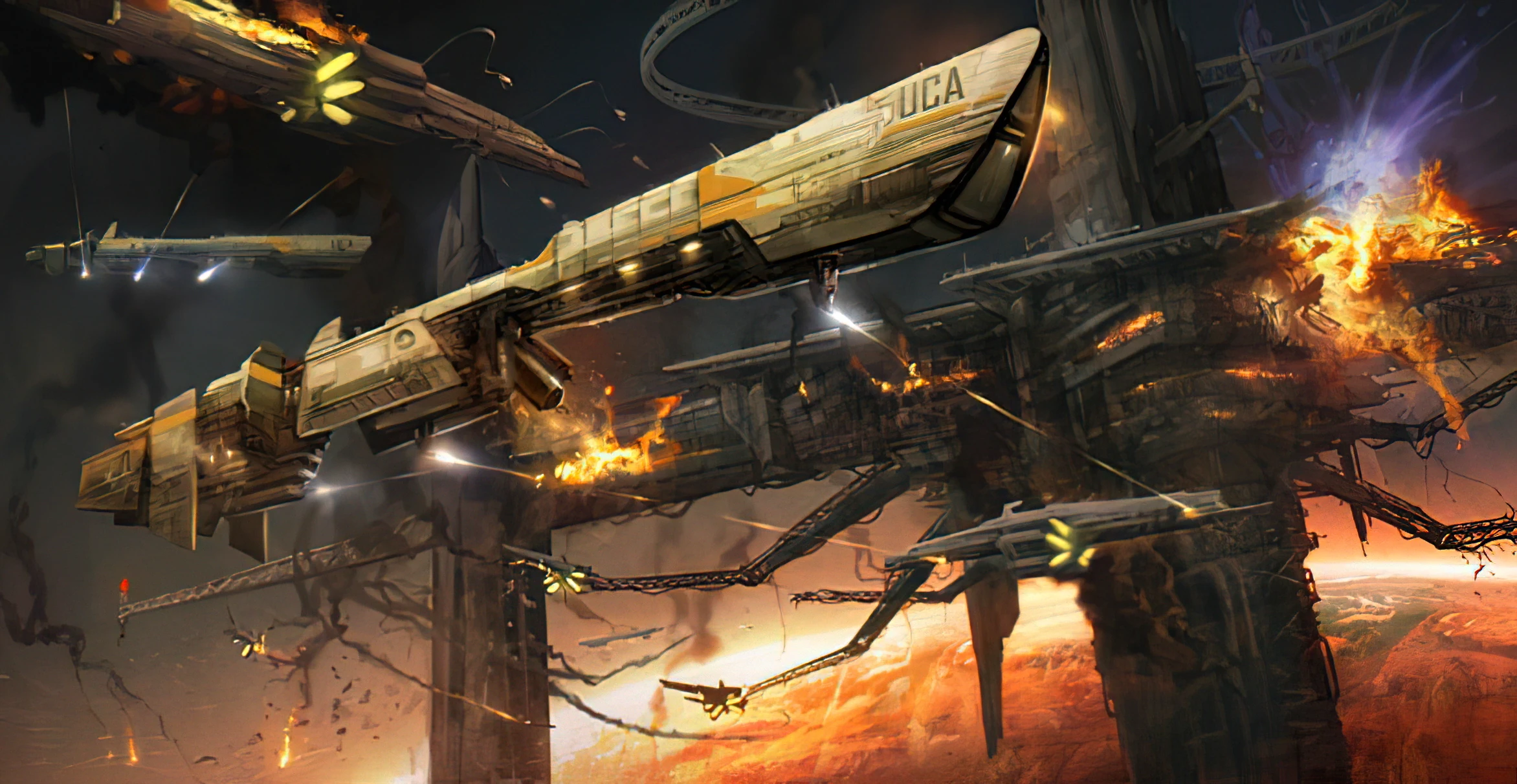 - The UCA Navy cruisers prove to be untouchable by the much smaller Helghan vessels and the fleet action is a massacre, with almost the entire Helghan fleet being destroyed or disabled. During the fighting, however, the massive orbital structure is destroyed under mysterious circumstances.[1]